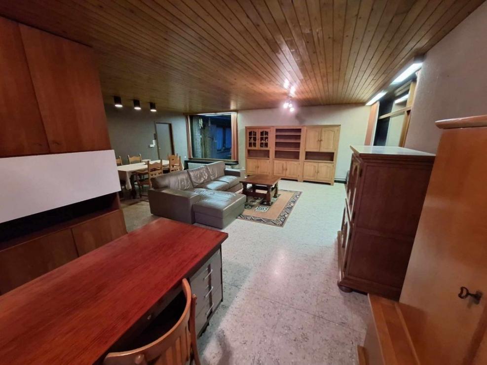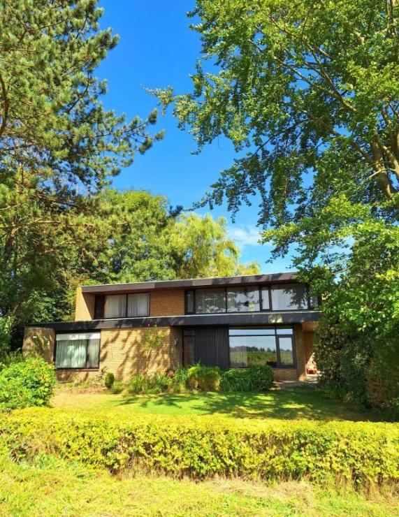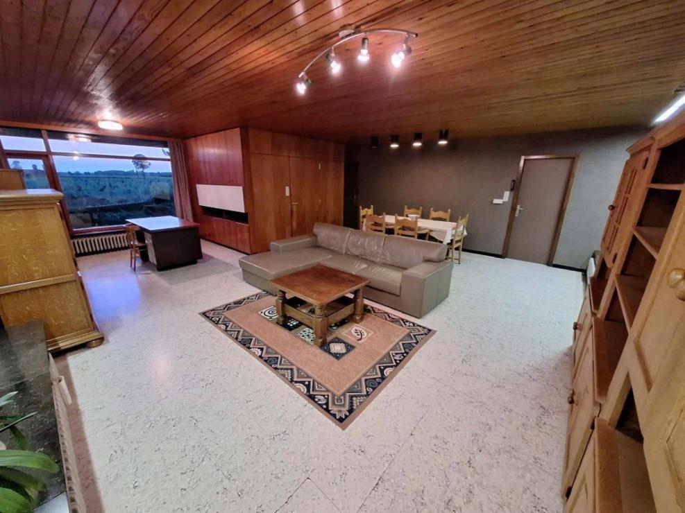 De woning vooraan is gebouwd in 1969 in moderne stijl met beneden oa ruime woonkamer met eetplaats en bureel, keuken en boven 4 ruime slaapkamers.